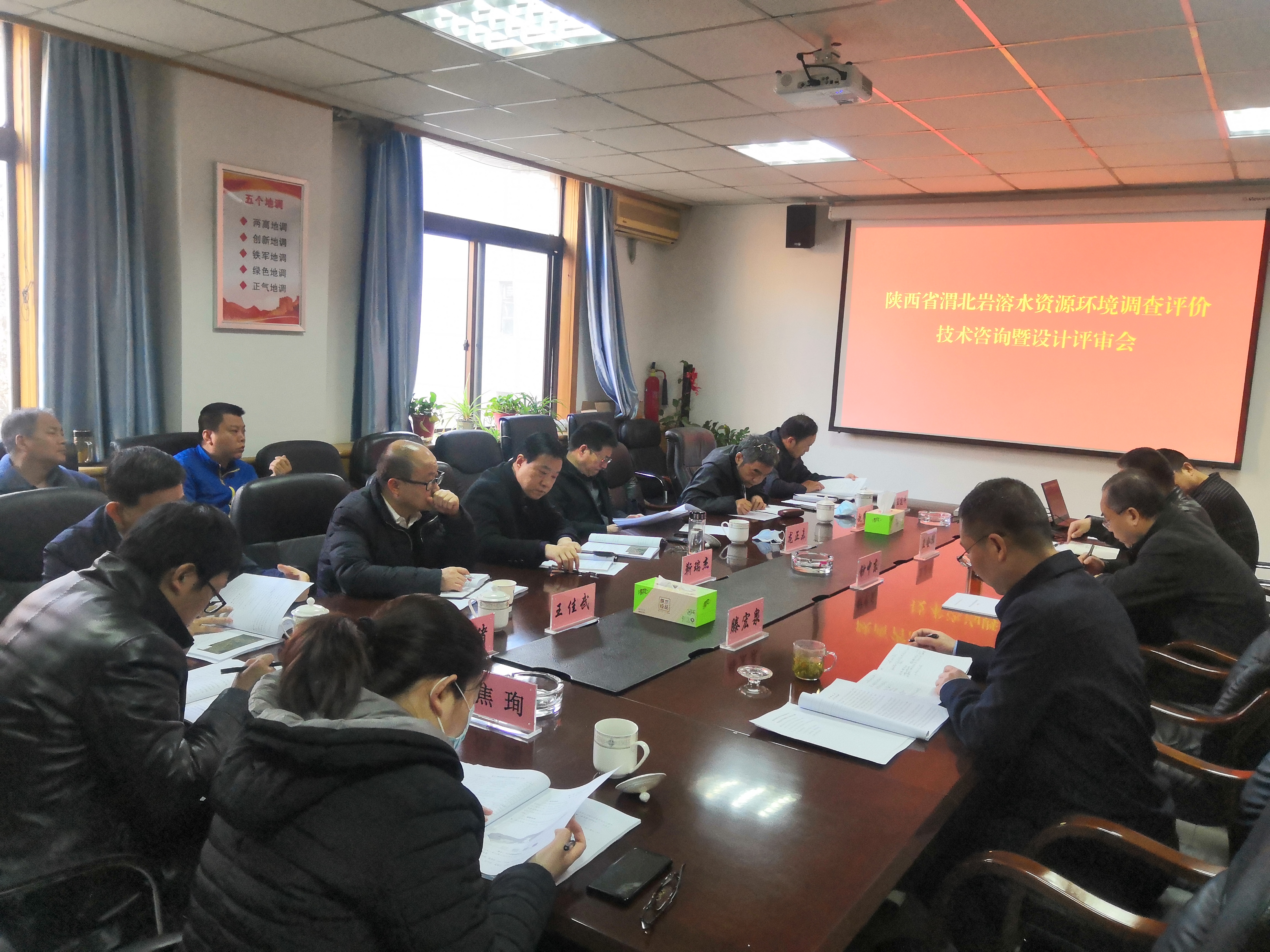 為更好地發揮支撐政府,服務社會職能定位,陜西省渭北巖溶水資源環境調查評價項目特邀請了龍正未、趙耀東、靳瑞杰、王佳武等9位專家,從項目實施、地方需求、環境保護等角度展開了充分研討,理清了工作思路和方法,明晰了工作重點和難點。