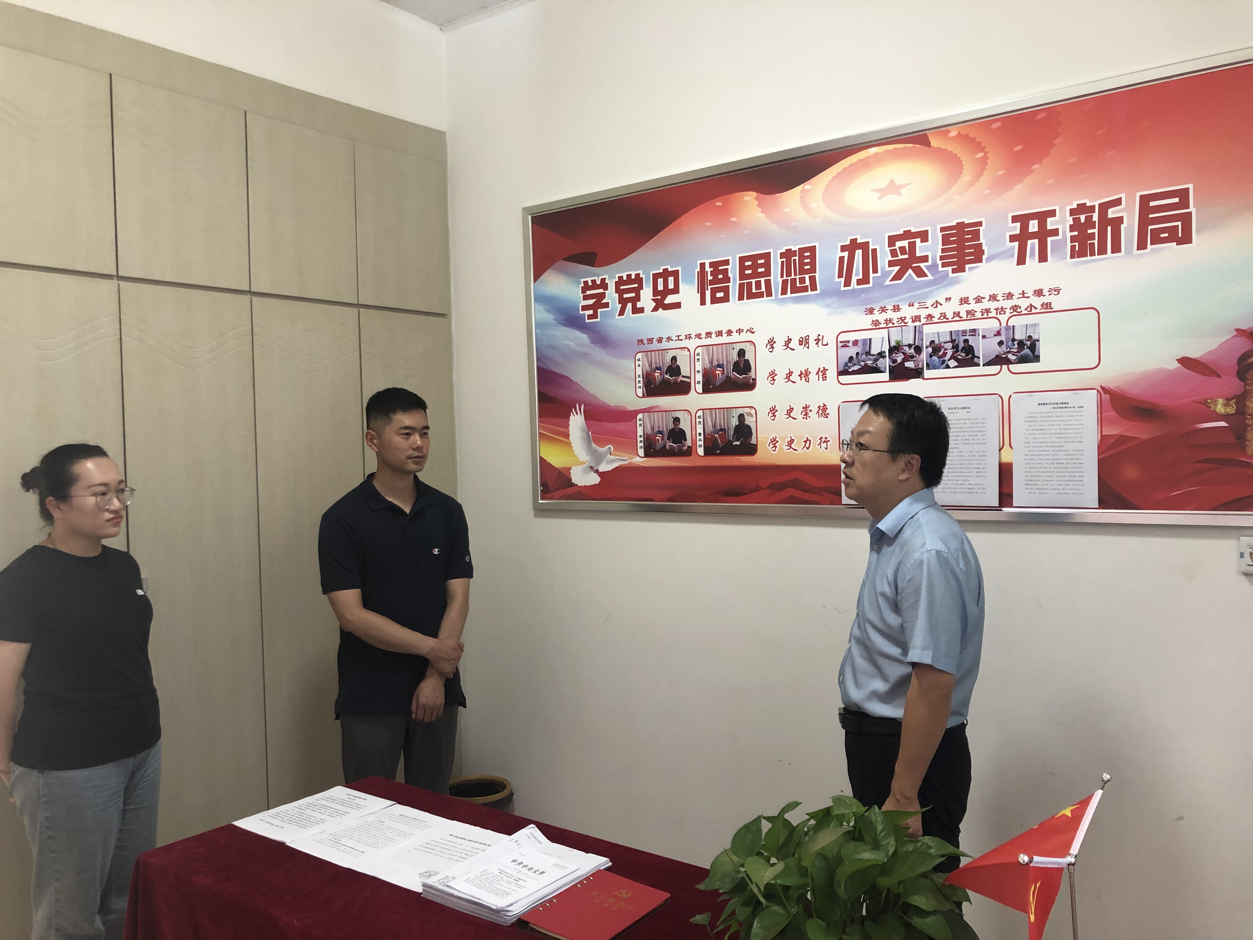 9月10日,陜西省水工環地質調查中心副主任唐亮、監督科科長張惠民一行赴潼關“三小”提金廢渣調查及風險評估項目檢查安全保密和黨建工作。